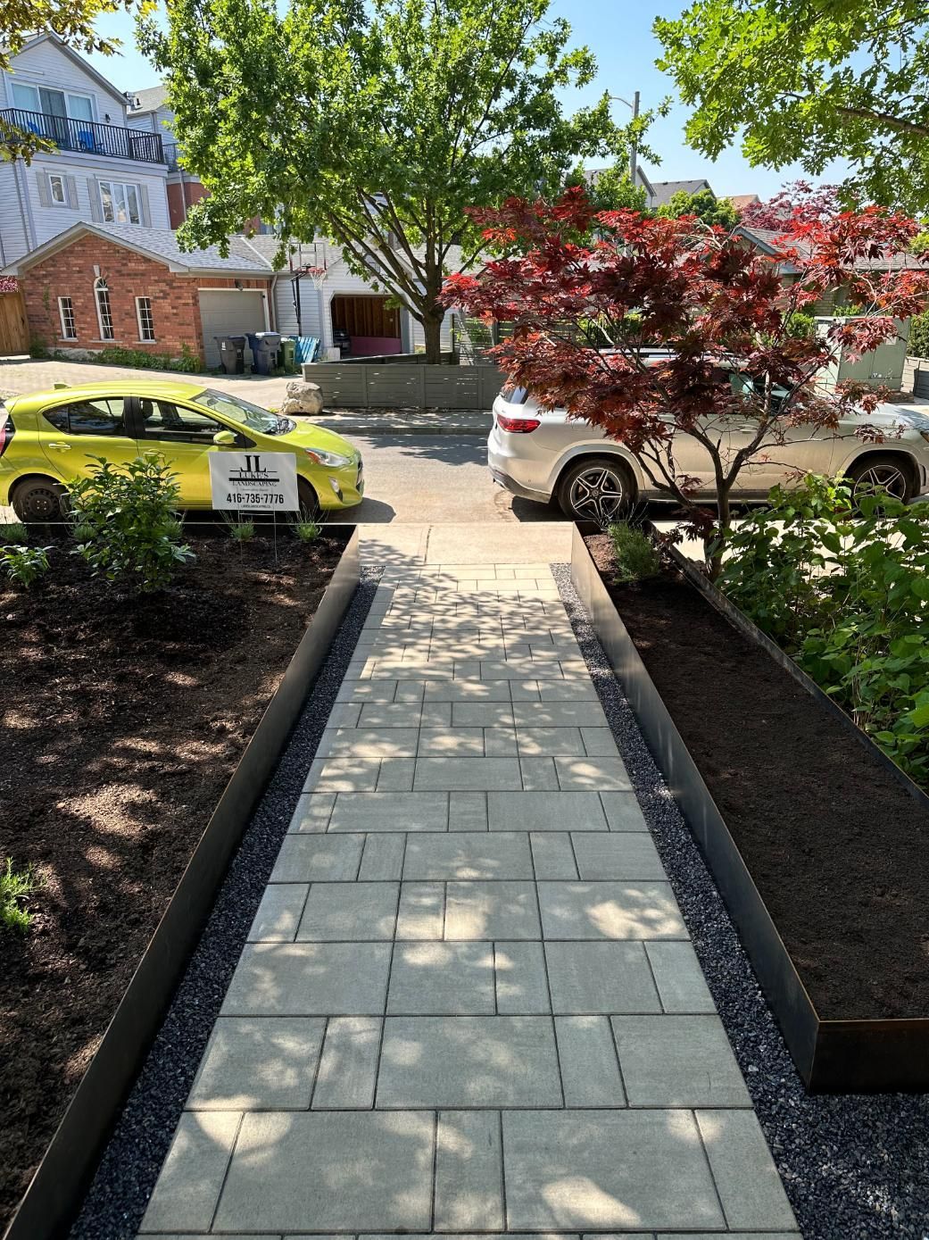- A sleek, modern walkway replacing the old, crumbling flagstone.